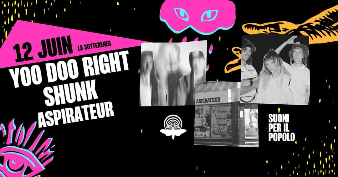 A night of honest approach to experimentation, Yoo Doo Right engages with elements of krautrock, shoegaze, post-rock and psychedelia, crafting a unique sound that could be described as a “car crash in slow motion, with Shunk’s limit-pushing cataclysmic rock, they will leave you invigorated, shocked and enamoured with their intense yet subtle sound. And Aspirateur, music for saxophone and electric guitar by the duo, James Goddard and Mat Ball.